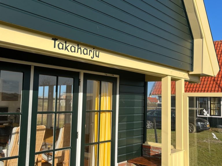 Takaharju staat met haar bijna identieke 'tweelingbroertje' Punkaharju op hetzelfde duin en samen vormen zij de oudste vakantiehuizen van Midsland aan Zee. Hier vind je het mooie verhaal hoe zij aan hun Finse namen zijn gekomen.